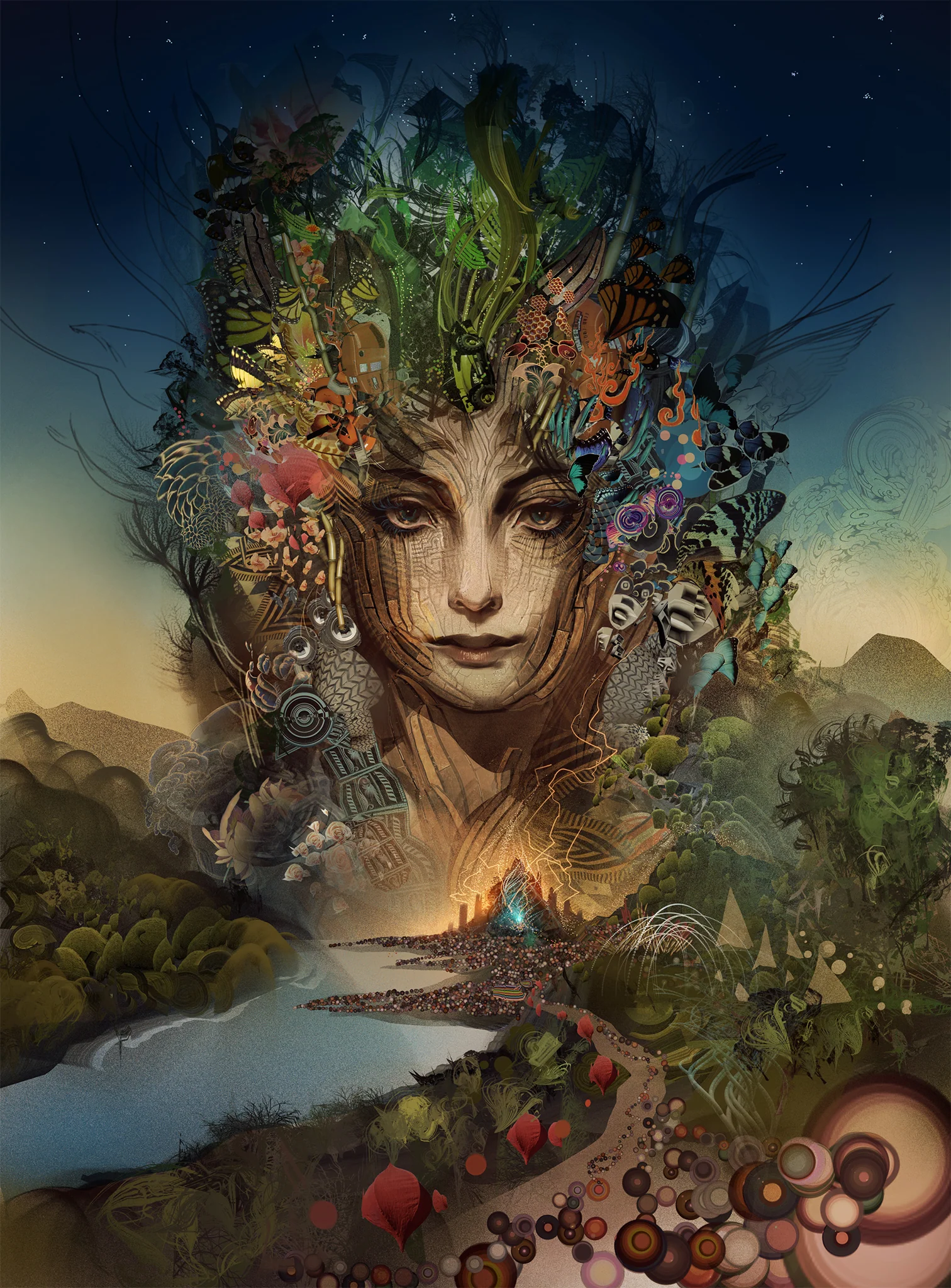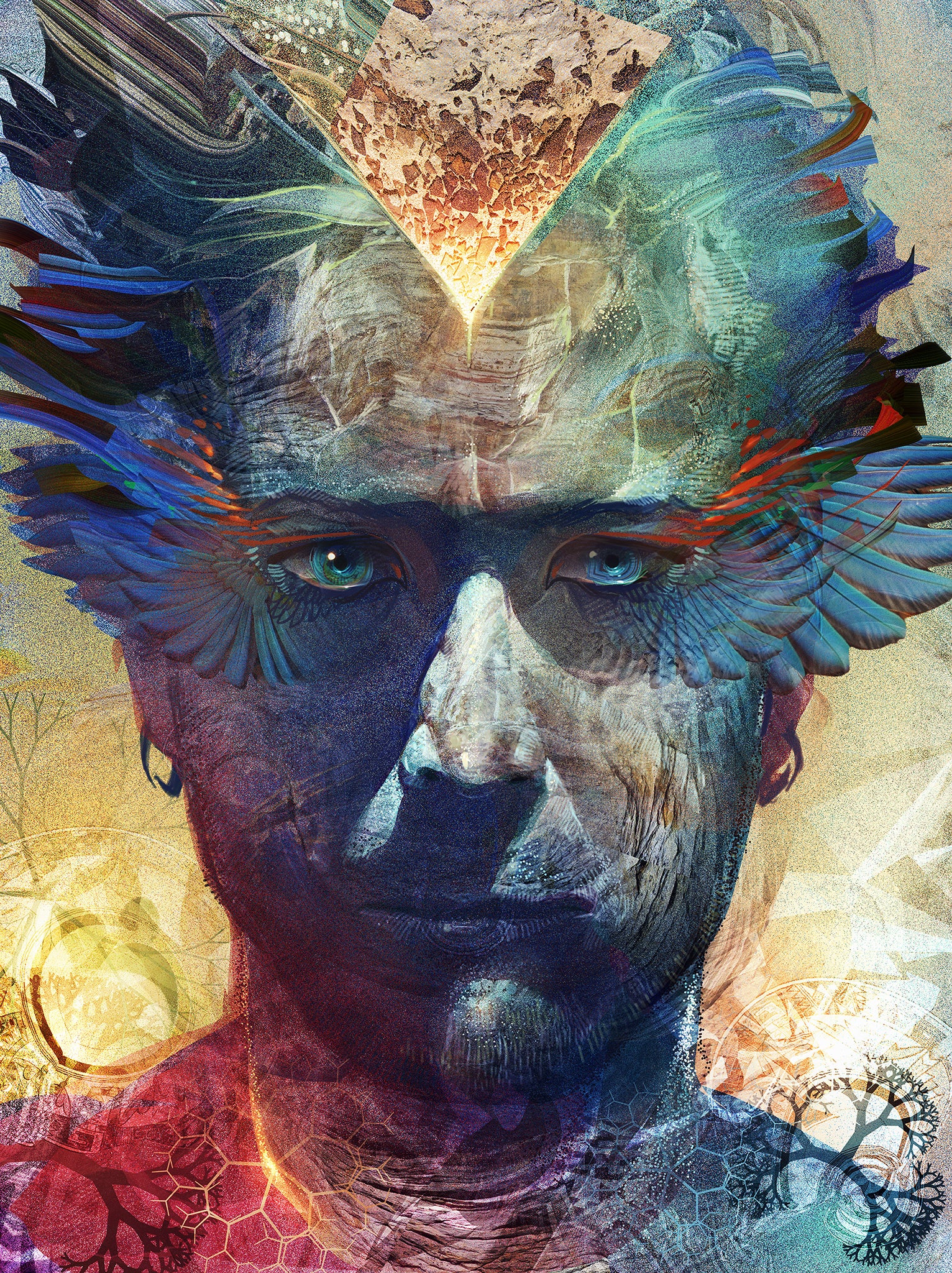 Android Jones is a digital painter and live performance artist whose work sits at the intersection of technology, spirituality, and altered states of consciousness. He describes his style as Electro-Mineralism — channeling the planet's elemental wonders through custom digital tools to create layered, psychedelic works that push the boundaries of imagination.